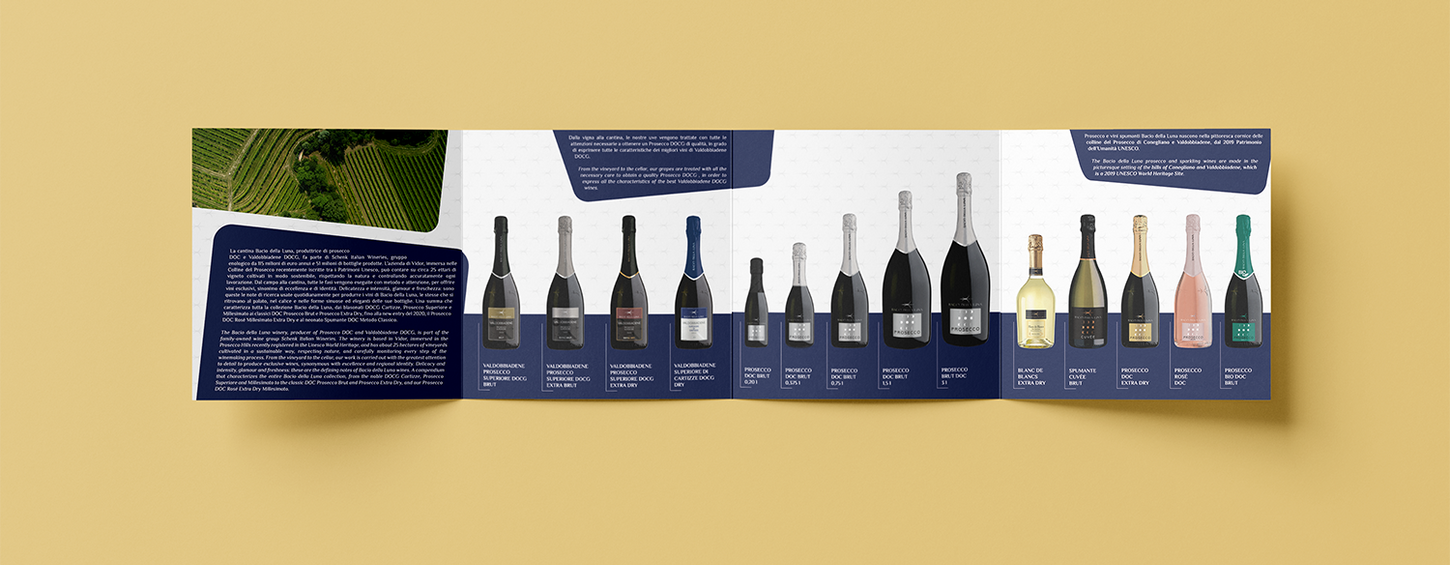 Ecco cosa abbiamo realizzato per il brand Bacio della Luna: una brochure accattivante che presenta il loro catalogo vini in modo dettagliato e coinvolgente, insieme a un poster vivace per l'evento in cantina del 2 giugno, ispirato ai colori italiani. Scopri come abbiamo catturato l'essenza e l'atmosfera unica dei loro prodotti!